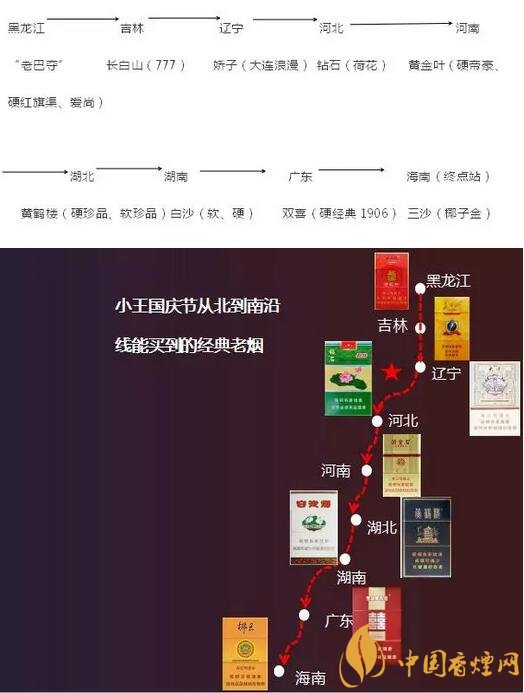 咱們先從南北說起。假設(shè)本次旅游的主角小王從黑龍江坐火車出發(fā),一省一停,直至海南下車小王從黑龍江出發(fā),上車前先買包10元/包的“老巴奪”,以慰藉接下來的思鄉(xiāng)之情,并避免抽不慣外省的煙。
