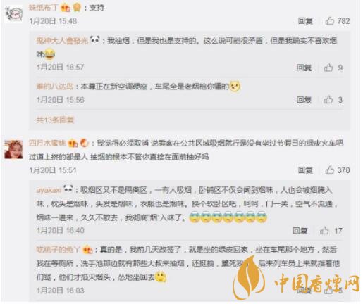 網(wǎng)友對(duì)列車(chē)全面禁煙的評(píng)論截圖