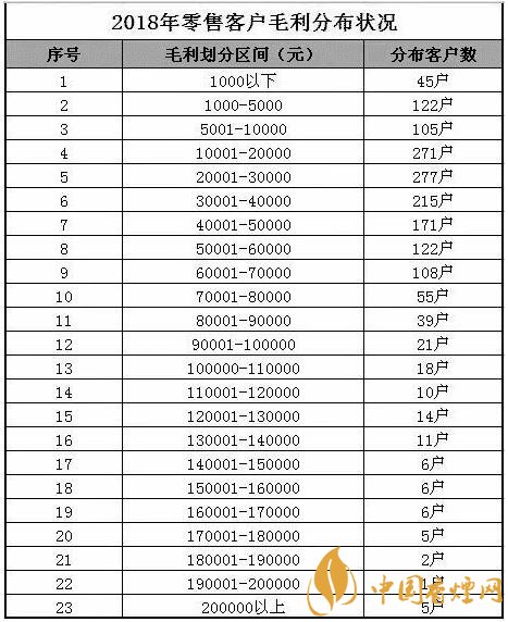 注:上表可以看出2018年卷煙商品毛利率超過超過19%的有2位客戶,其中數(shù)據(jù)顯示全市最低的零售客戶毛利率是11.67%。