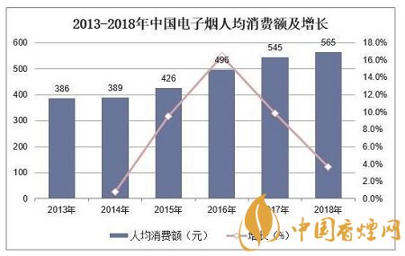 從電子煙人均消費額來看,據(jù)統(tǒng)計,截至到2018年,中國電子煙人均消費額為565元,同比增長3.7%。