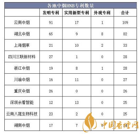 云南中煙作為國內(nèi)較早布局新型煙草制品的企業(yè),截至2019年7月?lián)碛蠬NB相關專利總量超109件,位列各省級中煙公司之首。