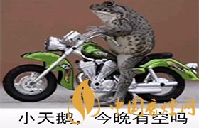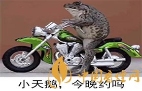 這其實是大家看到的一個表情包,上面是一只癩蛤蟆騎著摩托車,想要約小天鵝出門。想要表達的就是癩蛤蟆想吃天鵝肉。