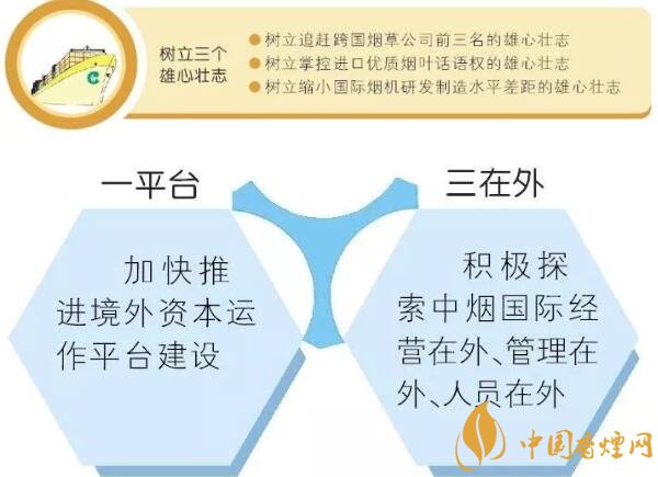 2017年全國煙草工作會議上,凌成興局長明確提出“深化‘走出去’發(fā)展配套體系改革,加快推進境外資本運作平臺建設,積極探索中煙國際實現(xiàn)經(jīng)營在外、管理在外、人員在外的轉型方案”。目前,“一平臺三在外”,已經(jīng)上升為行業(yè)國際市場拓展的戰(zhàn)略性舉措,是行業(yè)當前和今后一個時期內(nèi)推進拓展體制改革、機制創(chuàng)新、業(yè)務發(fā)展的重要著力點。