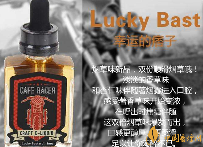 美國(guó)金獎(jiǎng)煙油有哪些?美國(guó)金獎(jiǎng)電子煙油Cafe就是其中一款,CAFE RACER摩托車系列煙油為加州恩西尼塔斯的始創(chuàng)者手工制作,均使用方形瓶裝,全系列有3款口味并都貼有印著機(jī)車圖案的標(biāo)簽,為:Lucky13(幸運(yùn)13)、Pech guzzi(桃子機(jī)車,guzzi為意大利語(yǔ)的摩托車)和Yogurt bomb(優(yōu)格炸彈),3款煙油的PG:VG均為30:70,適用于儲(chǔ)油和滴油霧化器,其中的Lucky13為美國(guó)峰會(huì)金獎(jiǎng)煙油上的煙草口味金獎(jiǎng)得主。