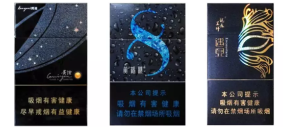 國際大牌里面黑色包裝幾乎占了60%,再說卷煙,近兩年黑色包裝的煙越來越多了,比如貴煙(跨越)、中南海(典8)、黃鶴樓(硬8度)、七匹狼(硬鋒芒)、金橋(冰爆)、大青山(狼圖騰)、龍鳳呈祥(遇見)等。經典款式永遠都是黑色調,這是因為黑色給人一種高水準、高品質的高級感覺。2018卷煙流行色黑色個性時尚顏值高,百搭時尚款。