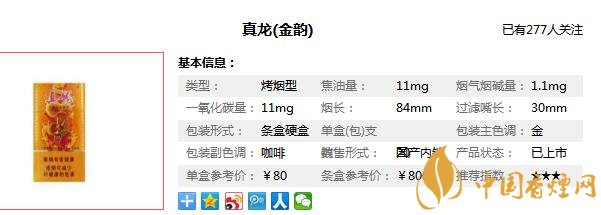 以上內(nèi)容是由香煙網(wǎng)小編為大家介紹的關(guān)于,真龍金韻多少錢一包以及真龍金韻香煙價(jià)格圖片相關(guān)的信息,想要了解更多相關(guān)內(nèi)容請(qǐng)點(diǎn)擊:真龍珍品多少錢一包。