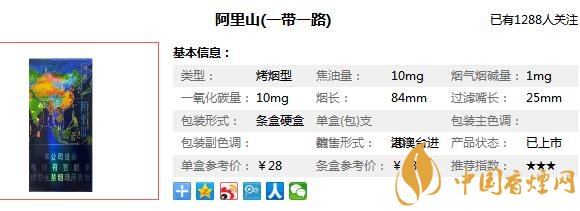 這款阿里山一帶一路香煙,是來自寶島臺(tái)灣的卷煙品牌,煙葉主要甄選自南緯23°以北和北緯23°以南世界級(jí)優(yōu)質(zhì)名產(chǎn)區(qū),經(jīng)復(fù)烤及自然醇化所成之上等烤煙,那么在介紹一路一帶香煙什么價(jià)格之前,先來看看這款一路一帶香煙多少一包,這款香煙的售價(jià)為28元/包。