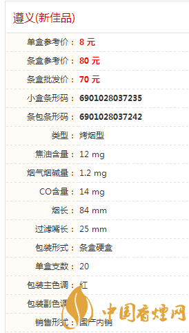 遵義(新佳品)香煙為遵義品牌旗下的一款香煙。佳品“遵義”是遵義集團(tuán)新開發(fā)的遵義系列產(chǎn)品之一。該產(chǎn)品選用國(guó)內(nèi)外不同類型,不同地區(qū),不同年限的優(yōu)質(zhì)煙葉原料,借助先進(jìn)的理化分析手段和致香物質(zhì)研究成果,經(jīng)過多次精心試制開發(fā)而成。 該產(chǎn)品香氣清雅飄逸,豐滿諧調(diào),余味純凈。給人以優(yōu)美舒適的感覺。