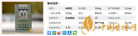| 類(lèi)型 :烤煙型 | 焦油量 :10mg | 煙氣煙堿量 :1.1mg | 一氧化碳量 :11mg |
