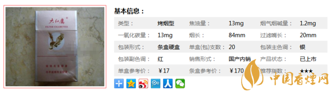 這款煙感覺還算可以,味道純正、品質(zhì)工整,沒有什么明顯的缺點。當(dāng)年這個煙在浙江是非?;鸬模贻p人的首選,包裝設(shè)計年輕化,口感也很好,當(dāng)時候的大紅鷹口感比較像云南煙,煙氣柔和,香氣清甜,回味清爽,抽過的人很難挑出毛病,除了高昂的價格。估計浙江中煙確實把主要精力投入到利群品牌上了,大紅鷹只是在吃老本。好在大紅鷹(銀)還算屬于中檔的產(chǎn)品。經(jīng)香煙網(wǎng)小編市場調(diào)查大紅鷹銀售價為17元/包。