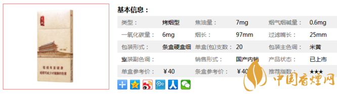 | 類(lèi)型 :烤煙型 | 焦油量 :7mg | 煙氣煙堿量 :0.6mg | 一氧化碳量 :6mg |