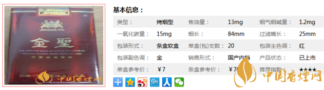 金圣東方香煙選用云南高原優(yōu)質煙葉,結合世界最著名煙葉產區(qū)津巴布韋名貴煙葉,經(jīng)天然山洞窖藏三年以上,配以美國進口香精香料,經(jīng)國內著名煙草配方師歷時兩年研制而成。下面我們一起來看金圣東方的參數(shù)信息:焦油量:13mg. 煙堿量:1.2mg. 一氧化碳量:15mg.