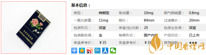 | 煙長(zhǎng):84mm | 過(guò)濾嘴長(zhǎng):20mm | 包裝形式:深藍(lán) | 單盒(包)支數(shù):20 |