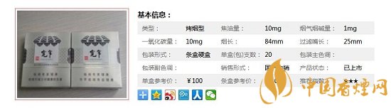 | 類(lèi)型 :烤煙型 | 焦油量 :10mg | 煙氣煙堿量 :1mg | 一氧化碳量 :10mg |