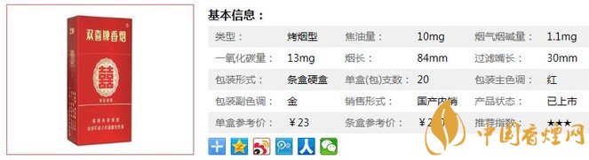 雙喜硬世紀(jì)經(jīng)典煙支長84mm,產(chǎn)品精選美國、津巴布韋、贊比亞等國際優(yōu)質(zhì)煙葉原料和云南、貴州、四川、湖南等國內(nèi)知名產(chǎn)區(qū)的上等煙葉。香醇度很高的煙氣層次分明、協(xié)調(diào)、成團(tuán)性也很好,感受舒適。下面我們一起來看雙喜硬世紀(jì)經(jīng)典的參數(shù)信息:焦油量:10mg. 煙堿量:1.1mg. 一氧化碳量:13mg.