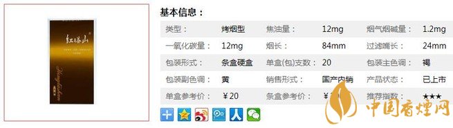 | 類型 :烤煙型 | 焦油量 :12mg | 煙氣煙堿量 :1.2mg | 一氧化碳量 :12mg |