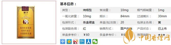 | 類(lèi)型 :烤煙型 | 焦油量 :10mg | 煙氣煙堿量 :1.1mg | 一氧化碳量 :11mg |