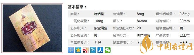 | 類型 :烤煙型 | 焦油量 :10mg | 煙氣煙堿量 :1.1mg | 一氧化碳量 :12mg |