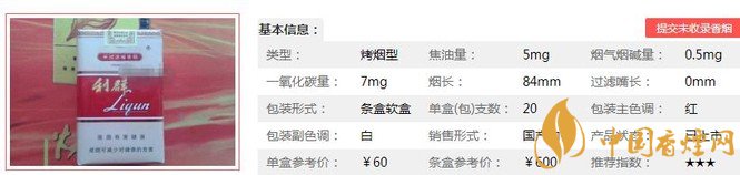 | 類型 :烤煙型 | 焦油量 :5mg | 煙氣煙堿量 :0.5mg | 一氧化碳量 :7mg |