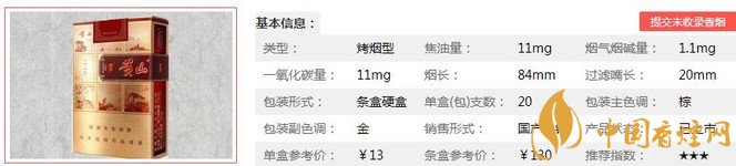 黃山硬錦繡煙支長84mm,過濾嘴:25mm,采用國內(nèi)外優(yōu)質(zhì)原料,以醇化兩年以上煙葉優(yōu)化配方,經(jīng)數(shù)字化調(diào)試及獨(dú)創(chuàng)工藝精制而成。下面我們一起來看黃山硬錦繡的參數(shù)信息:焦油量:11mg 煙堿量:1.1mg 一氧化碳量:11mg