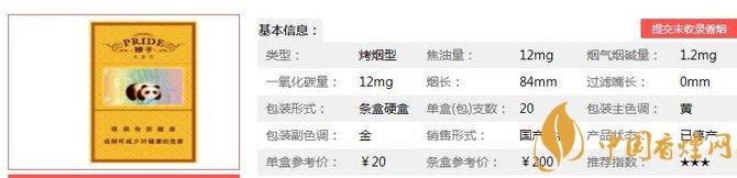 | 煙長:84mm | 過濾嘴長:25mm | 包裝形式:條盒硬盒 | 單盒(包)支數:20 |