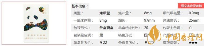“2014 Pentawards全球頂級包裝設(shè)計大賽”金獎包裝作品,中細(xì)煙支設(shè)計彰顯優(yōu)雅與品位,山水云竹演繹的多彩熊貓,毛發(fā)纖毫畢現(xiàn)、雙目炯炯有神,絕妙創(chuàng)意與精湛技藝相得益彰。該煙在低焦里算是不錯的選擇,如果是喜歡抽的煙都很醇很烈就不推薦此煙了。