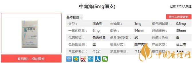 中南海藍(lán)色風(fēng)尚口感測(cè)評(píng) 中國(guó)第一支低危害卷煙