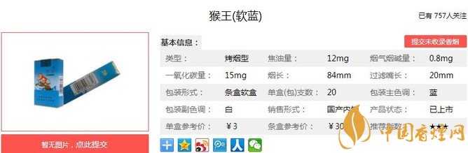 以上便是由香煙網(wǎng)小編為大家介紹的關(guān)于猴王軟藍(lán)價格及參數(shù) 陜西低價煙中的佼佼者的相關(guān)信息,想要了解更多有關(guān)內(nèi)容請點擊:猴王喜慶價格及參數(shù) 猴王喜慶獨家口感分析