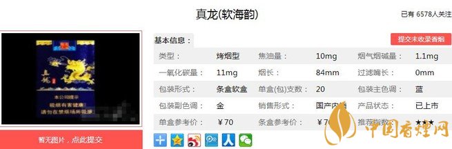 真龍軟海韻柔和細膩,煙氣醇厚。風格以烤煙本香為主,調(diào)香以輔助增強為目的,體現(xiàn)烤煙的自然本香、焦、甜風味。配方組分和調(diào)香配伍比較成熟,算真龍海韻風格的大成。經(jīng)香煙網(wǎng)小編市場調(diào)查真龍軟海韻售價為70元/包。
