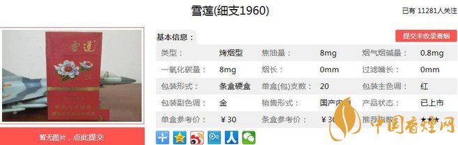 以上便是由香煙網(wǎng)小編為大家介紹的關(guān)于雪蓮細支1960多少錢一包 雪蓮細支1960口感及參數(shù)介紹的相關(guān)信息,想要了解更多有關(guān)內(nèi)容請點擊:鉆石一品荷花好抽嗎 鉆石一品荷花獨家口感測評