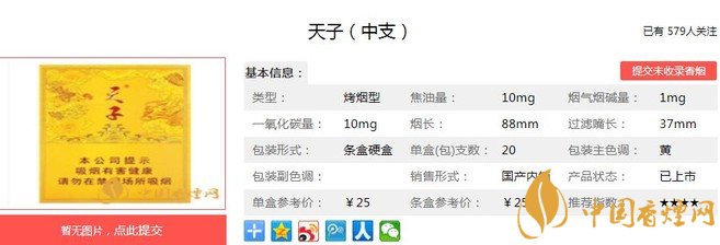 以上便是由小編為大家介紹的關(guān)于天子(中支)的相關(guān)信息。品味一番后,小編也就不奇怪天子(中支)的好評率了。一個產(chǎn)品自身過硬,總是不缺伯樂的。想要了解更多內(nèi)容請點(diǎn)擊:雪蓮細(xì)支1960多少錢一包 雪蓮細(xì)支1960口感及參數(shù)介紹