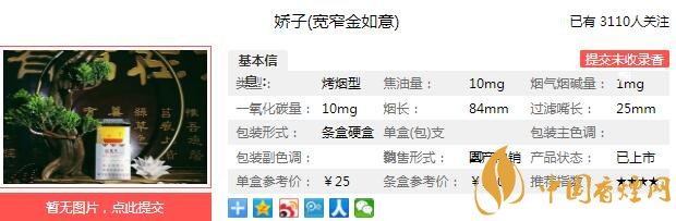 寬窄金如意濾嘴采用的兩段式復(fù)合醋酸纖維材質(zhì),并且在包裹爆珠的一段設(shè)計了鎖香層,達到持久留香的同時保證煙氣均勻持香,柔順流暢。香味飽滿,香氣濃郁;煙氣細膩、集中、流暢;自然煙草甜香味突顯,回味甘甜舒適。經(jīng)香煙網(wǎng)小編市場調(diào)查嬌子寬窄金如意售價為25元/包。