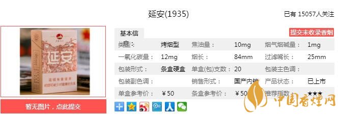 延安(1935)是在紀(jì)念1935年10月19日中央紅軍主力到達(dá)陜北吳起鎮(zhèn),中央紅軍長征勝利結(jié)束這樣強(qiáng)大的歷史背景下誕生的一款香煙。很多香煙品牌都在玩年代情懷,但是這款不一樣,因?yàn)樗?a href="http://m.0byseeuj.com/brand/8358.html" target="_blank">延安(1935)。這款煙傳承延安精神不忘紅色歲月。這款煙無法假冒,無人假冒。下面香煙網(wǎng)小編帶大家來了解下這款煙的包裝和口感。