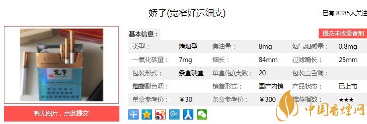嬌子寬窄好運細支煙支長84mm,過濾嘴長32mm,“寬窄”專線生產(chǎn),管理精細、標準精確、加工精準、制造精心。煙葉色澤均勻,填充比較緊實,煙紙為圓紋造型。下面我們一起來看嬌子寬窄好運細支的參數(shù)信息:焦油量:8mg 煙堿量:0.8mg 一氧化碳量:7mg