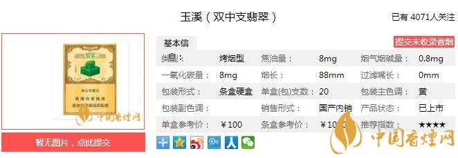 以上便是由香煙網(wǎng)小編為大家介紹的關(guān)于玉溪翡翠香煙價(jià)格 玉溪翡翠多少錢一包的相關(guān)信息,想要了解更多有關(guān)內(nèi)容請(qǐng)點(diǎn)擊:泰山望岳價(jià)格 山東中煙低焦產(chǎn)品的經(jīng)典之作