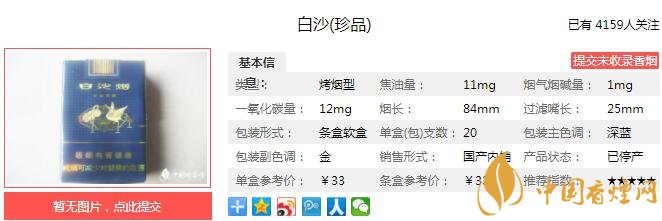 以上便是由香煙網(wǎng)小編為大家介紹的關(guān)于白沙珍品香煙價(jià)格 白沙珍品口感及參數(shù)介紹的相關(guān)信息,想要了解更多有關(guān)內(nèi)容請點(diǎn)擊:塞爾維亞100S硬紅香煙外包裝欣賞及口感測評