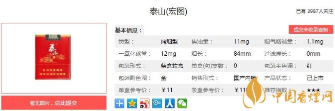 泰山宏圖運用高科技技術和各種香料精心配制而成,添加獨特天然植物精華調和的純煙葉香素,與煙草本香渾然一體,交匯出風格和諧、內(nèi)涵豐富的柔和自然香韻。細節(jié)之處盡顯香煙的高科技,定價卻是十分的親民,價格只需要11元一包,一般的煙民都能夠買得起。