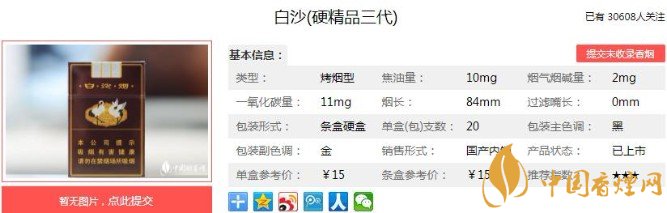 以上便是香煙網(wǎng)小編為大家介紹的關于兩次改良終成精品,白沙硬精品三代價格15元一包!的相關信息,看完之后大家是不是對于白沙(硬精品三代)的相關信息更加了解呢。大家還想查詢更多的相關內(nèi)容歡迎點擊:白沙軟和天下口感評鑒,百元價格級別的良心煙品