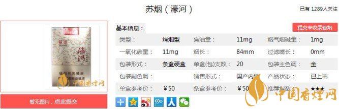 | 類型 :烤煙型 | 焦油量 :11mg | 煙氣煙堿量 :1mg | 一氧化碳量 :11mg |