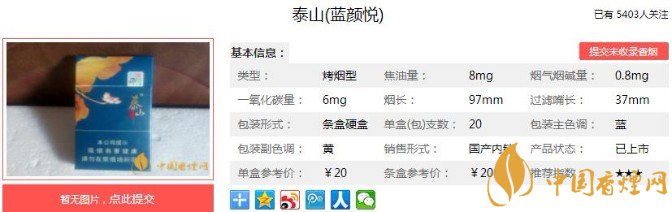 以上便是香煙網(wǎng)小編為大家介紹的關(guān)于泰山藍顏悅多少錢 泰山藍顏悅價格及口感品吸的相關(guān)信息,看完之后大家是不是對于泰山(藍顏悅)這款香煙的相關(guān)信息更加了解呢。大家還想查詢更多的相關(guān)內(nèi)容歡迎點擊:泰山儒風(fēng)多少錢 泰山儒風(fēng)最新口感評測