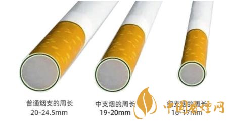 中支煙的煙支粗細介于普通煙支和細支之間,具體數(shù)據(jù)為19mm<中支煙<23mm。以上均為平均數(shù)值。