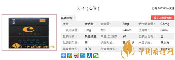 以上便是香煙網(wǎng)小編為大家介紹的關(guān)于天子C位香煙價(jià)格多少 天子C位香煙口感及參數(shù)介紹的相關(guān)信息,看完之后大家是不是對(duì)于天子(C位)這款香煙的相關(guān)信息更加了解呢。大家還想查詢更多的相關(guān)內(nèi)容歡迎點(diǎn)擊:嬌子金天子香煙官方價(jià)格表 嬌子金天子參數(shù)及口感