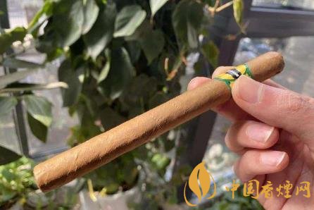 雪茄入手,手感緊實(shí)致密,纖細(xì)修長(zhǎng)的茄身彰顯其精致,執(zhí)于鼻間,茄香撲鼻,單聞茄香便陷入沉醉,非常過(guò)癮。量了下煙支尺寸,長(zhǎng)度 150mm,直徑 14mm,環(huán)徑 44mm,焦油量:中,售價(jià)為80元/盒。