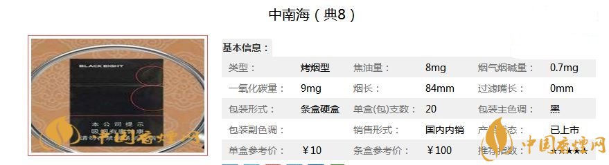 中南海(典8)多少錢一包?中南海(典8)抽起來口感如何?6月1日,中南海香煙一新品上市,中南海(典8),對(duì)于這款想上市的香煙,許多煙民還不熟悉,那么這款中南海(典8)多少錢一包?中南海(典8)抽起來口感如何?下面小編將為大家從中南海(典8)香煙價(jià)格,包裝以及口感三個(gè)方面介紹這款新煙。