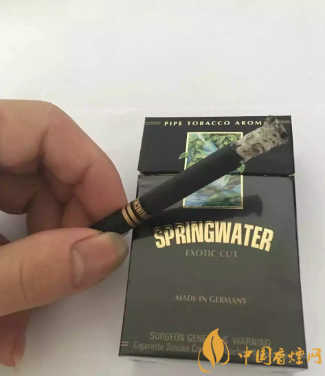 我們來(lái)看下這款春泉香煙的包裝,整體彩色黑色主色調(diào),正面一幅泉水圖案,圖案下面是“SPRINGWATER”包裝盒上沒(méi)有焦油含量一些理化指標(biāo),所以不太清楚。煙嘴上打的四排排焦孔來(lái)看,勁道不大。主圖案品牌醒目,總體視覺(jué)大氣端莊,采用黑色的煙嘴,十分精美漂亮。