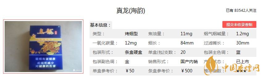 今天為大家介紹一款真龍海韻香煙,這款香煙被稱為“南海龍王”。之所以這樣叫,是因為這款香煙的包裝設計非常大氣,以龍的圖騰為主。那么這款南海龍王香煙多少錢一包?真龍海韻好抽嗎?下面為大家介紹一下真龍海韻的價格參數(shù)以及抽過的煙民對這款南海龍王香煙的評價。