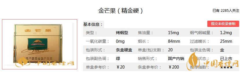 以上就是香煙網(wǎng)為大家整理介紹的金芒果香煙的品牌介紹以及金芒果香煙價(jià)格表圖一覽,希望為大家提供幫助。想查詢更多香煙信息,請(qǐng)關(guān)注香煙網(wǎng)!
