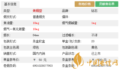 在原有手工選葉、音樂(lè)韻化、能量水活化的基礎(chǔ)上,鉆石(軟荷花)運(yùn)用小配方技術(shù)與計(jì)算機(jī)配伍相結(jié)合的方式,針對(duì)不同煙葉特性,對(duì)專(zhuān)屬原料進(jìn)行精心篩選、科學(xué)配伍,使葉組配方協(xié)調(diào)一致。下面我們一起來(lái)看看它的參數(shù)信息:煙長(zhǎng)84mm,焦油量10mg,煙堿量10mg,一氧化碳量10mg。
