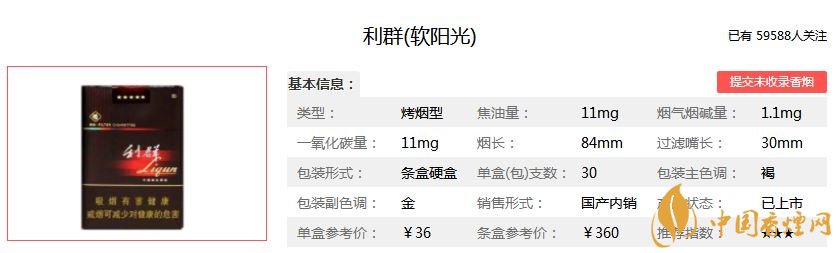| 類(lèi)型 :烤煙型 | 焦油量 :11mg | 煙氣煙堿量 :1.1mg | 一氧化碳量 :11mg |