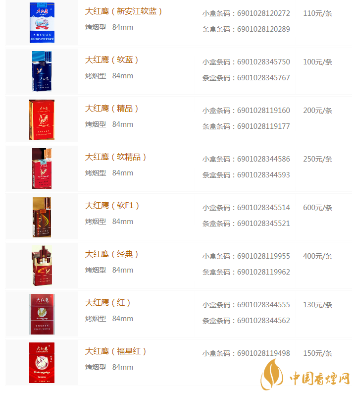 以上就是由香煙網(wǎng)小編為大家整理盤點(diǎn)的大紅鷹香煙價(jià)格表圖片的相內(nèi)容,希望為大家提供幫助。相信通過上述內(nèi)容的介紹,大家對(duì)大紅鷹香煙的價(jià)格有了了解。想查詢更多香煙價(jià)格,請(qǐng)關(guān)注我們!